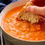 El problema con las recetas veganas de sopa de tomate es que sin la nata, a veces tienen una textura más cercana al gazpacho (con eso quiero decir demasiado ligera) que a una sopa de tomate cremosa en condiciones.