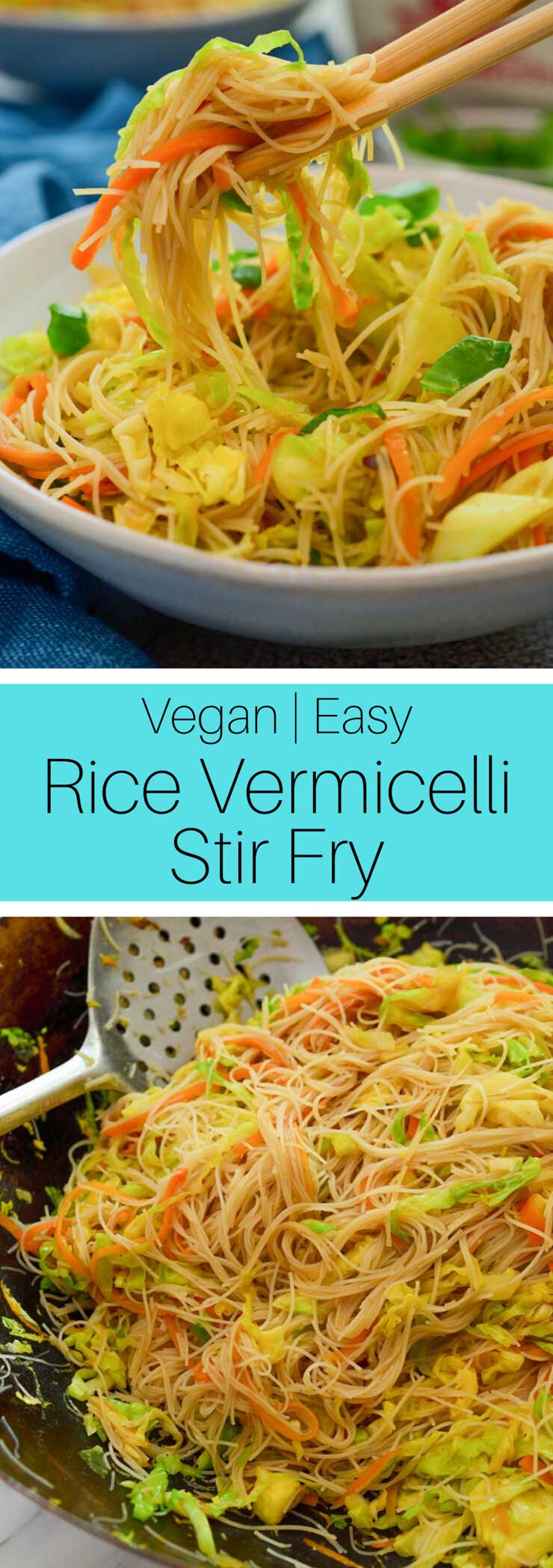 - Heat a wok or large pan over high heat. Add the oil, shallot or white part of the green onion, garlic and ginger and fry, stirring for 10 – 20 seconds. Add the carrot and cabbage and stir fry until soft. Add the rice noodles, soy sauce, red pepper flakes, salt, sugar and green parts of the green onion, if using. Mix well and stir fry for a couple of minutes until warmed through.
